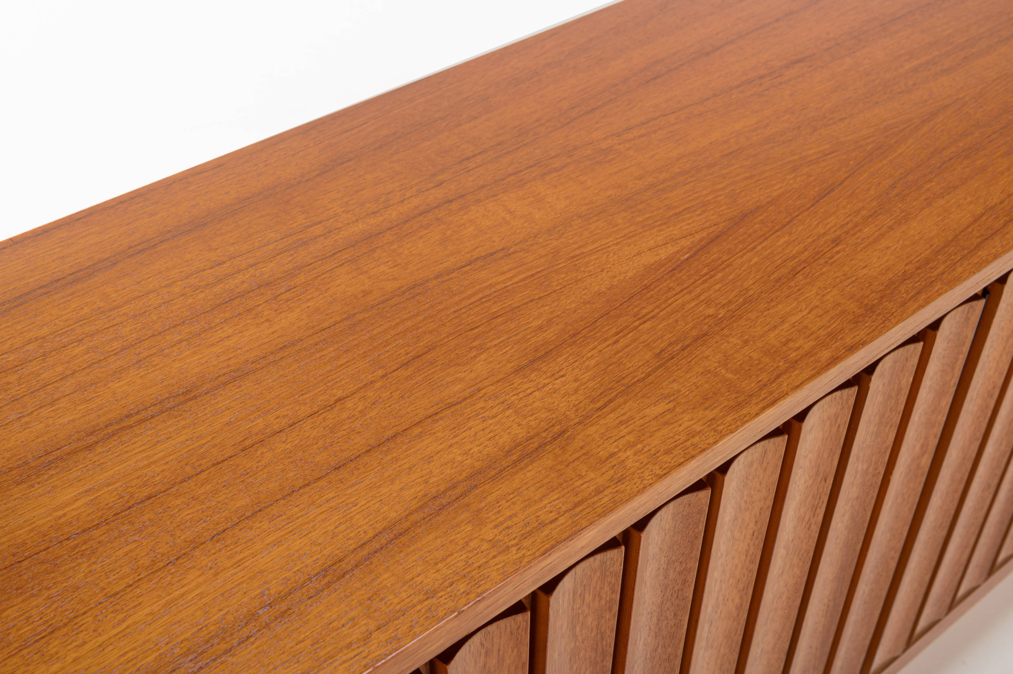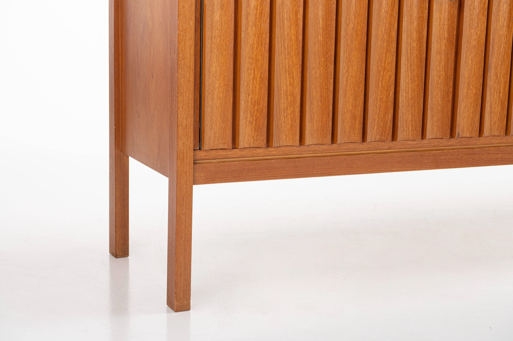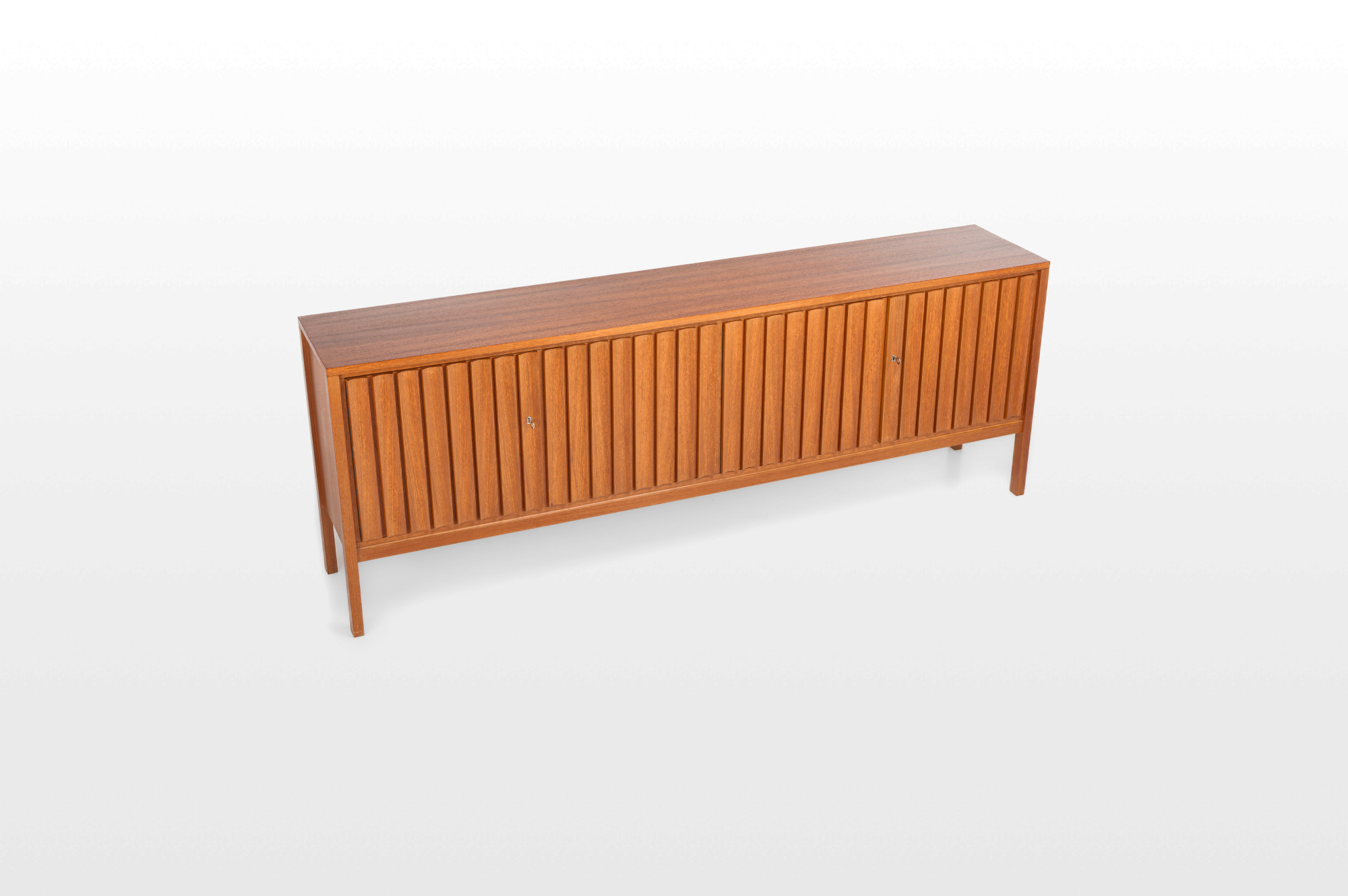 Beautiful sideboard by Leo Bub for BUB Wertmöbel. This sideboard is a true collector’s piece, featuring four hinged doors, two inner drawers, and a lot of storage space. Made of teak wood, it is in great condition.