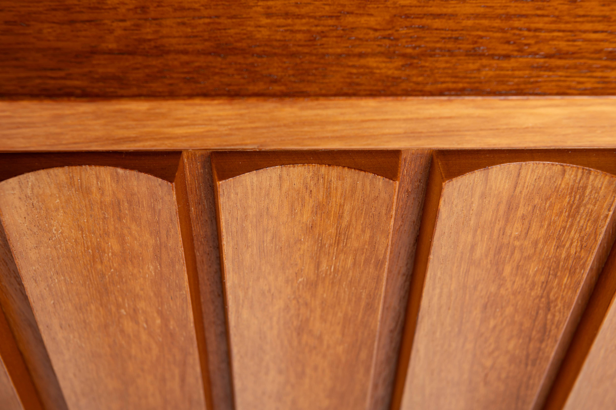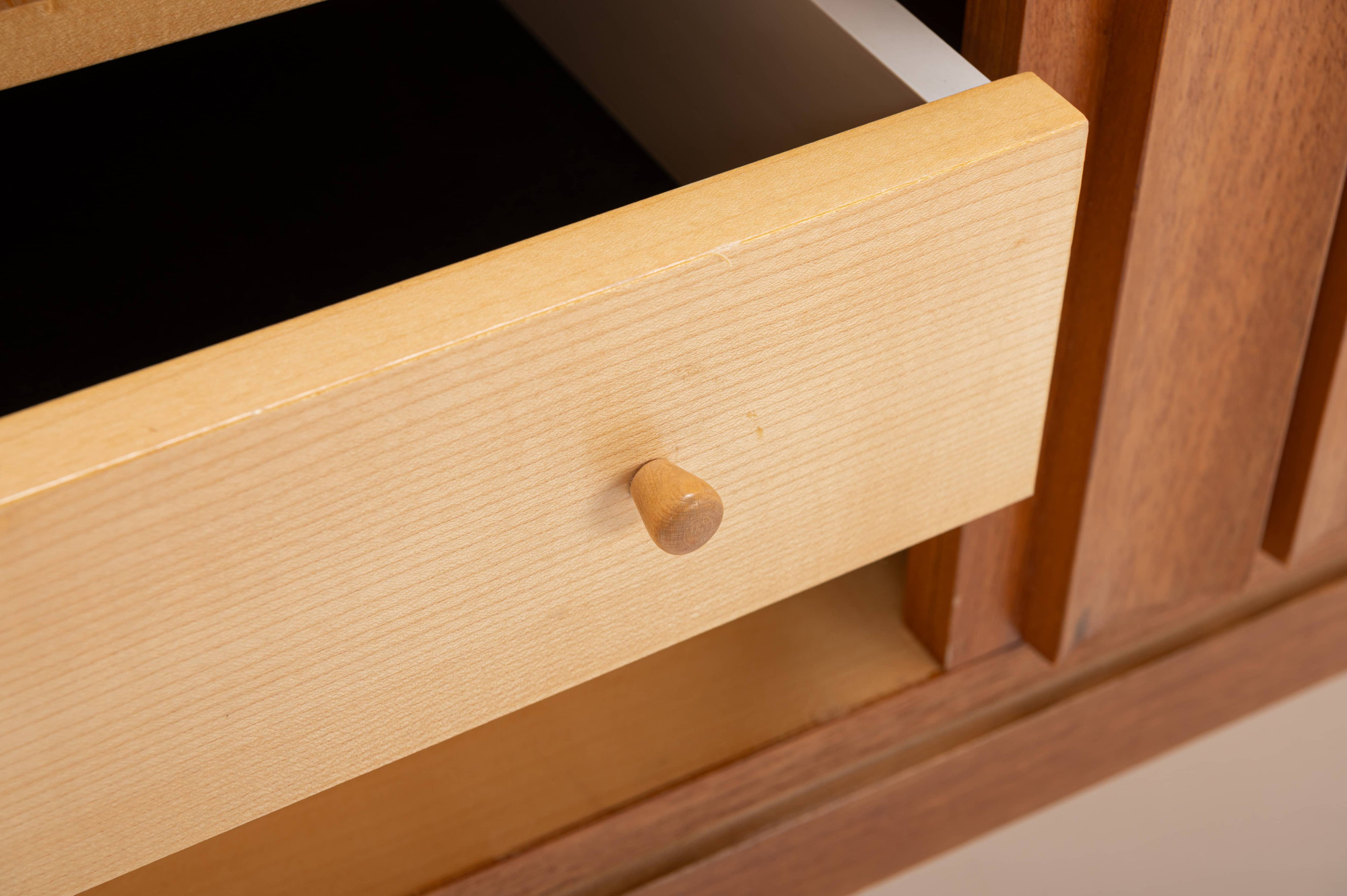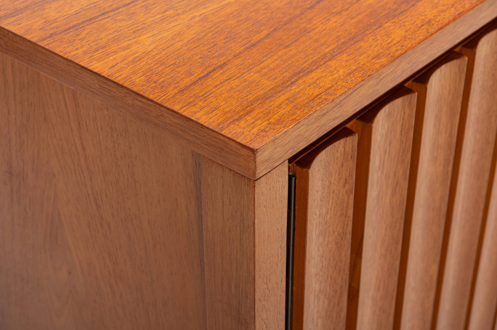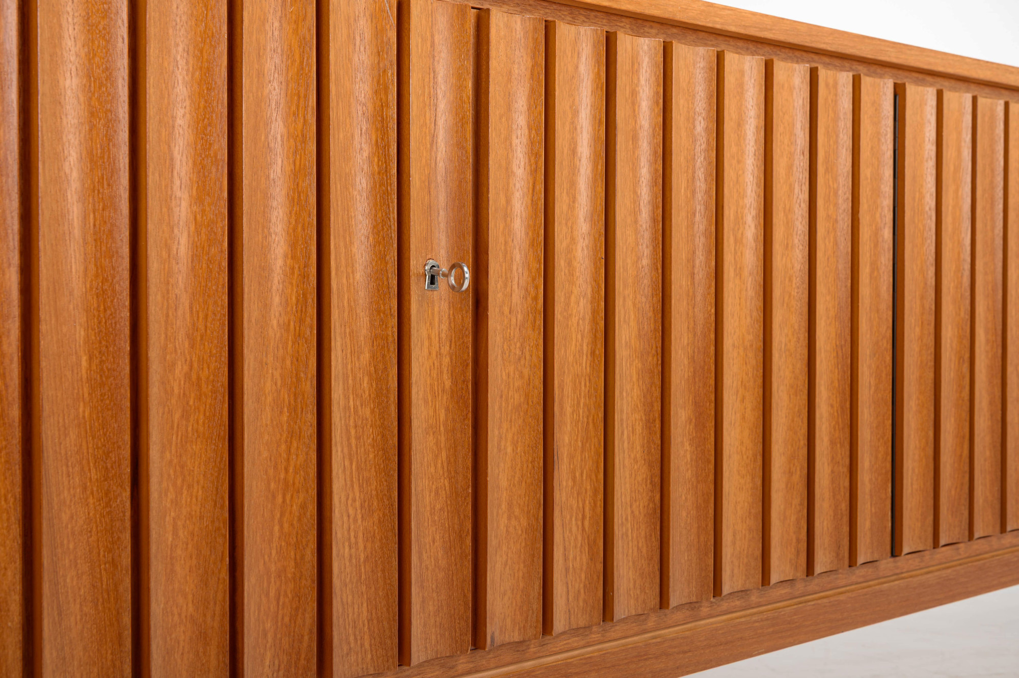 Beautiful sideboard by Leo Bub for BUB Wertmöbel. This sideboard is a true collector’s piece, featuring four hinged doors, two inner drawers, and a lot of storage space. Made of teak wood, it is in great condition.
