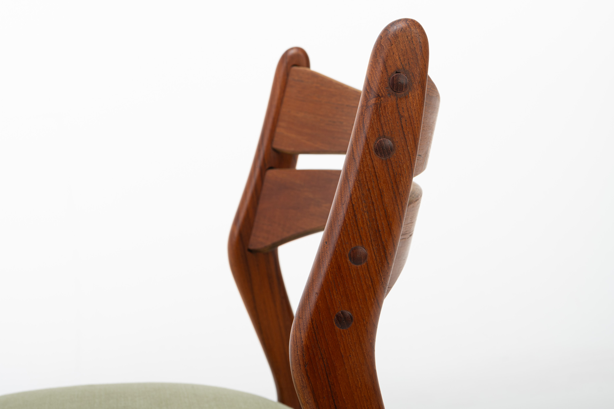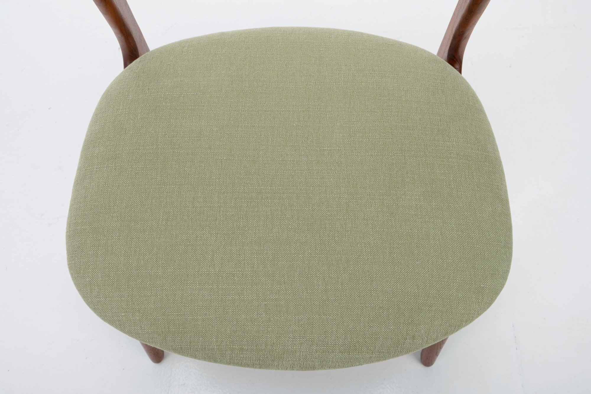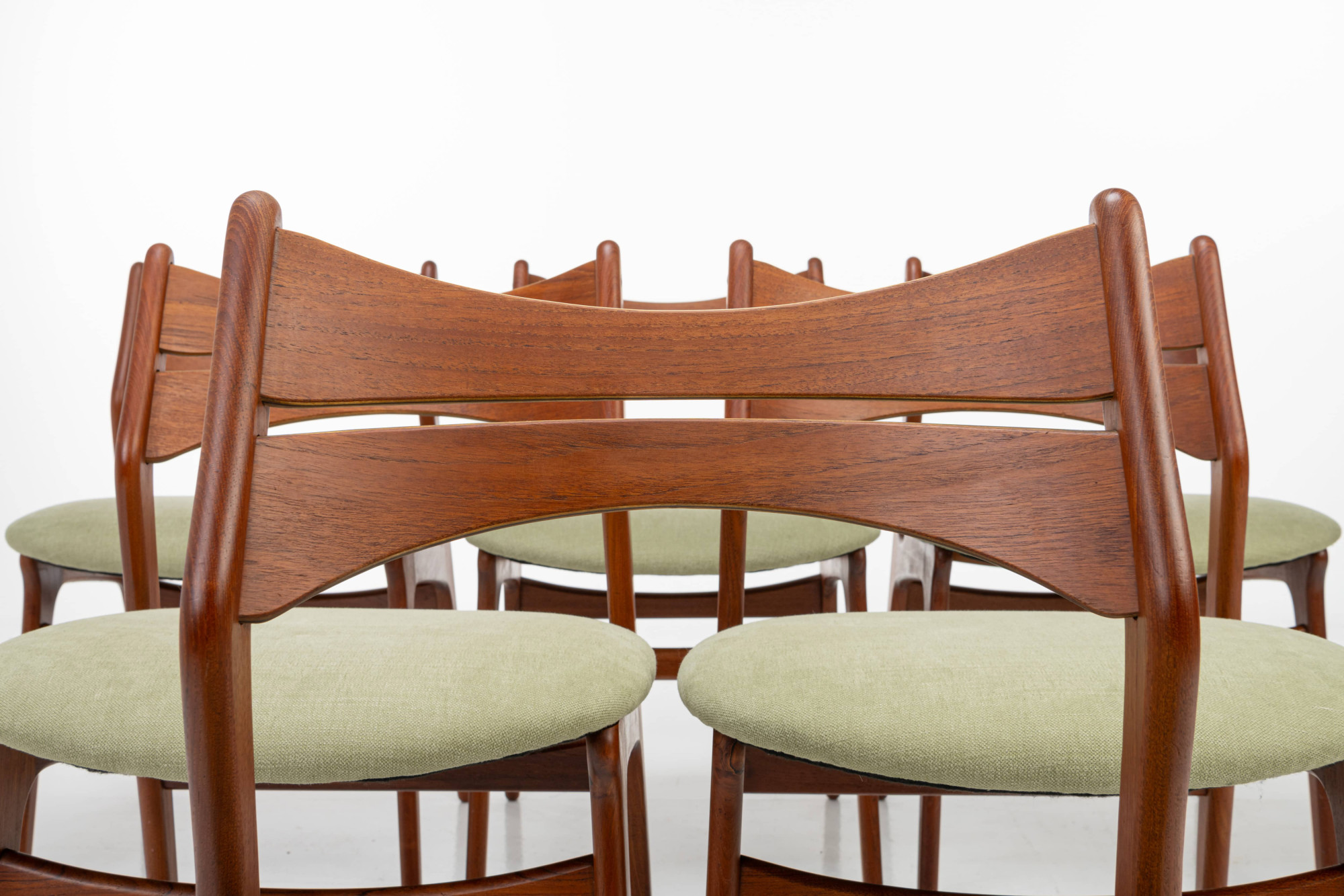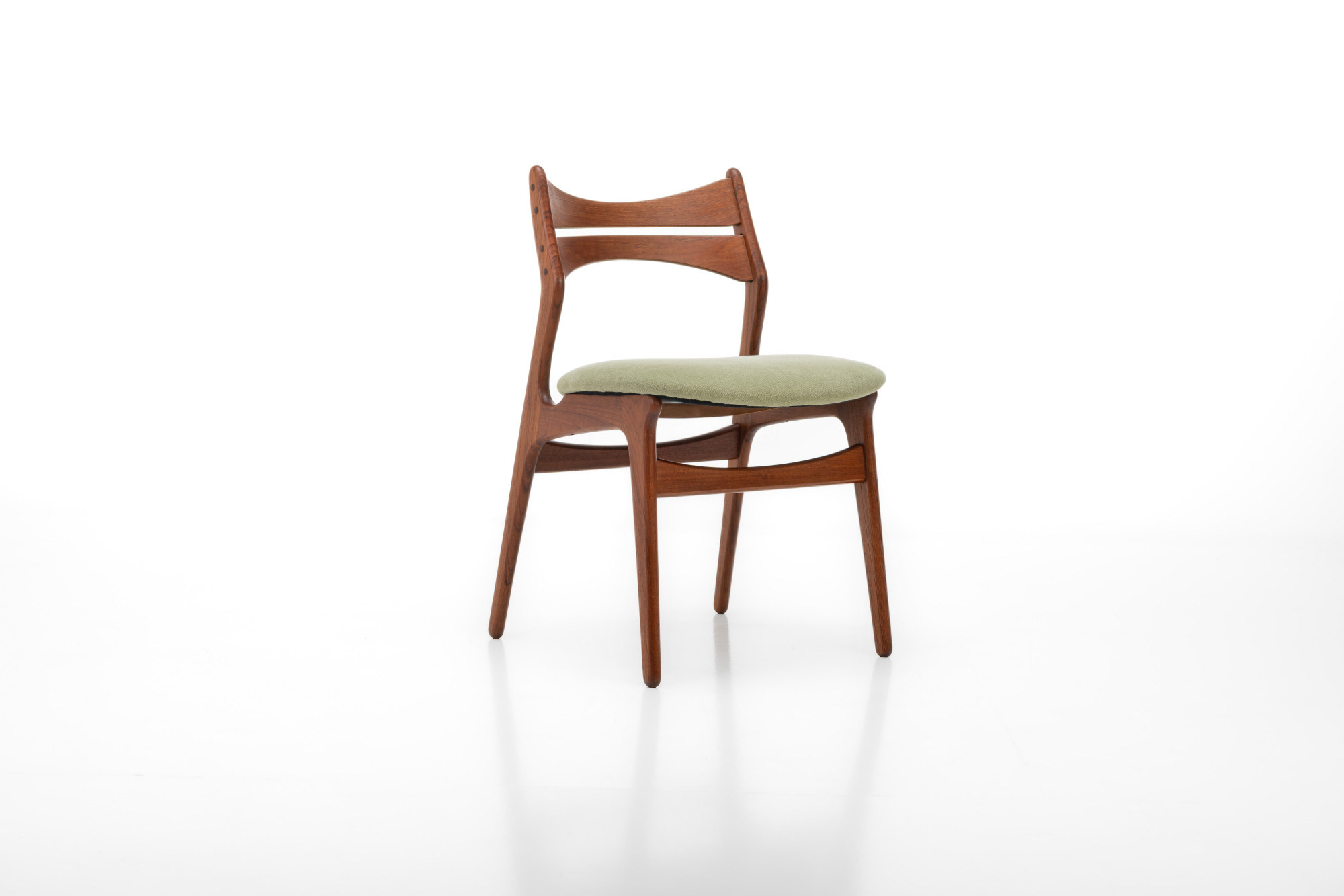 Set of six 'Model 310' dining chairs designed by Erik Buch for Christian Christensen Møbelfabrik, Denmark 1960s. The chairs are extremely comfortable and have been reupholstered with a light green fabric.