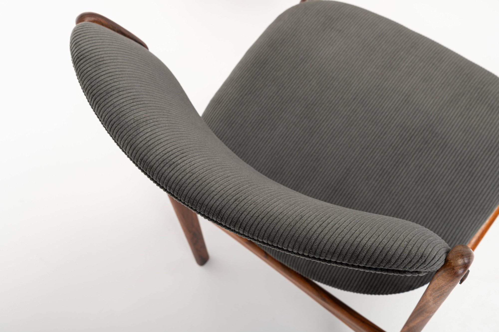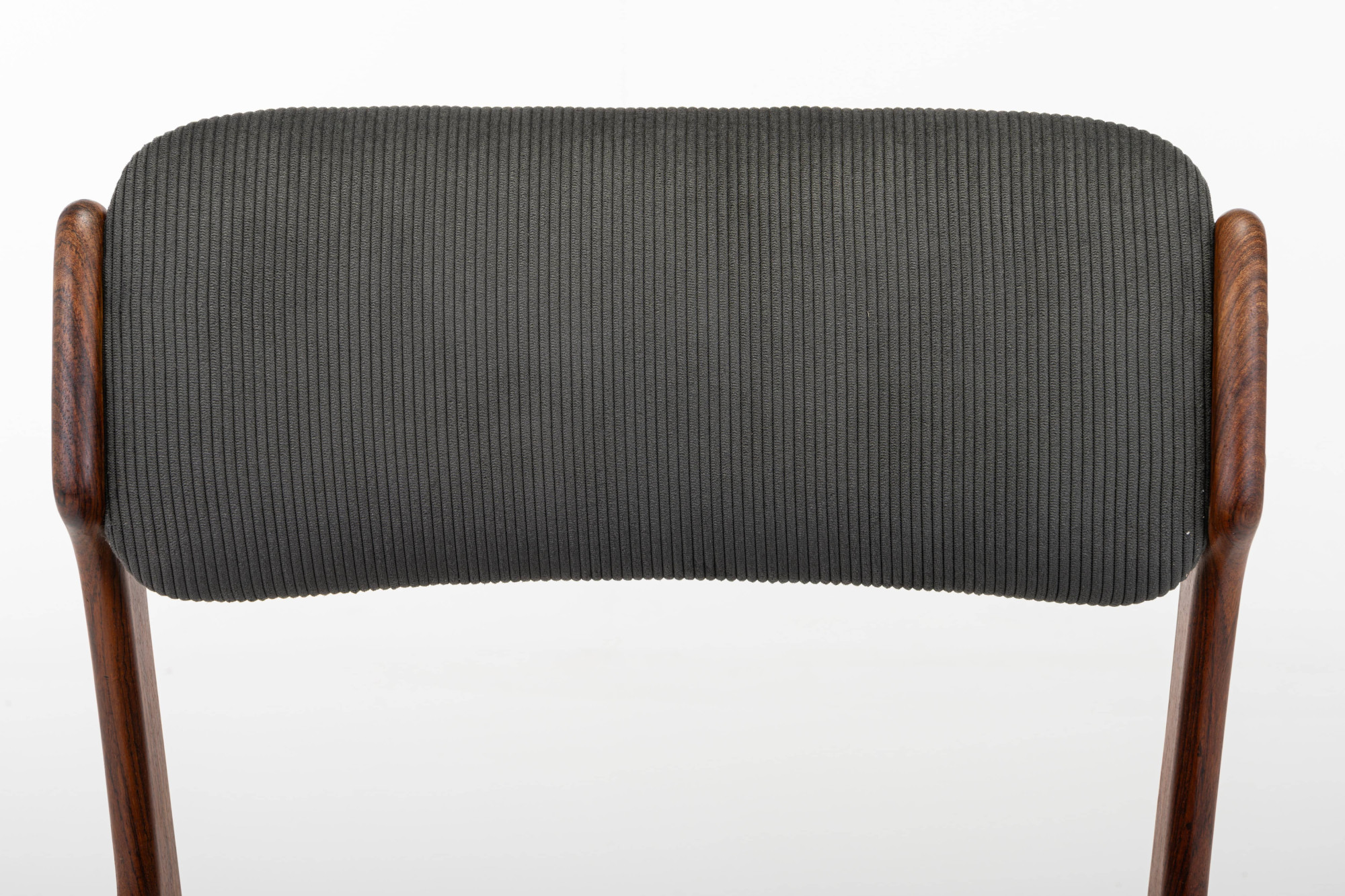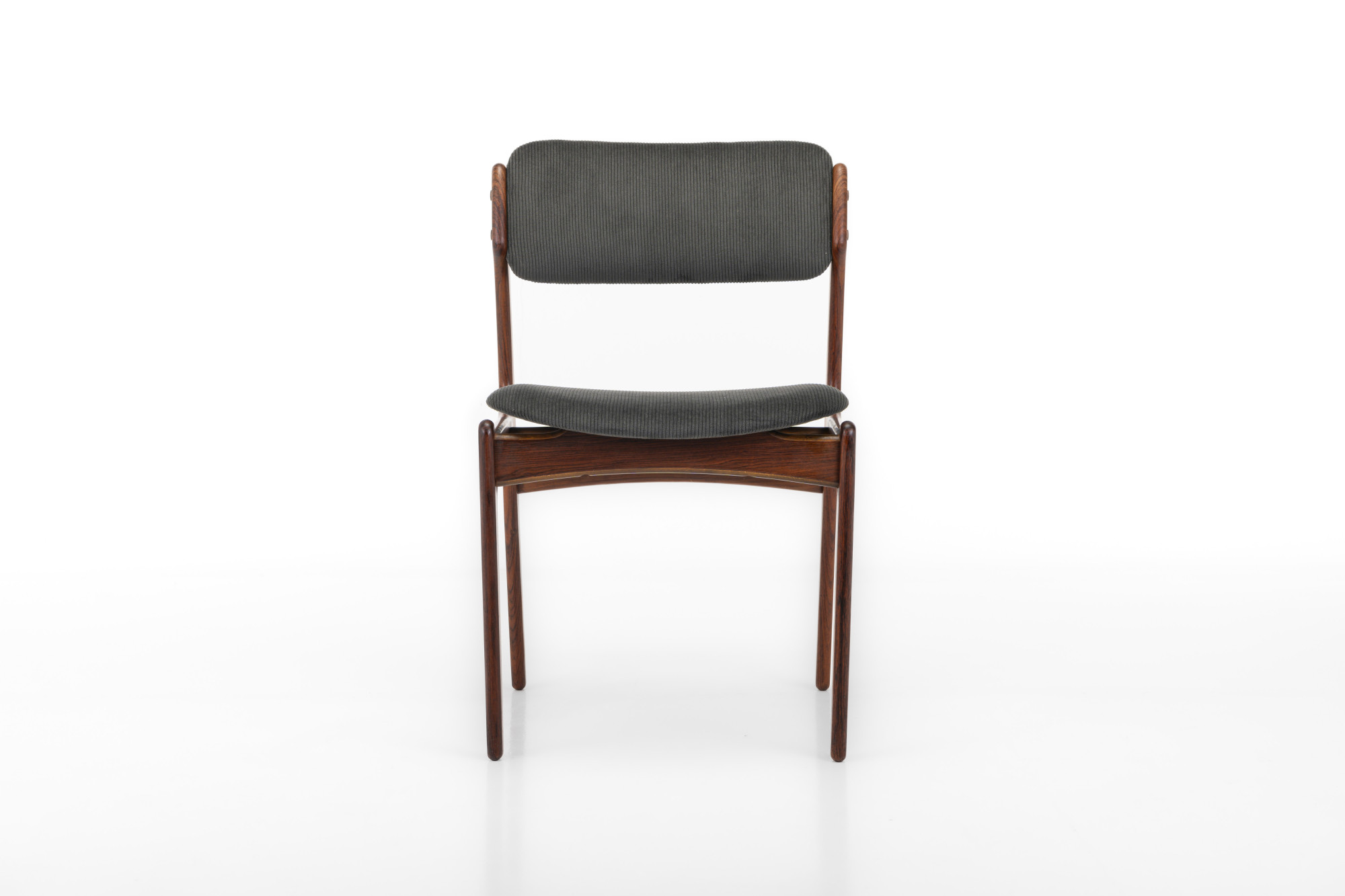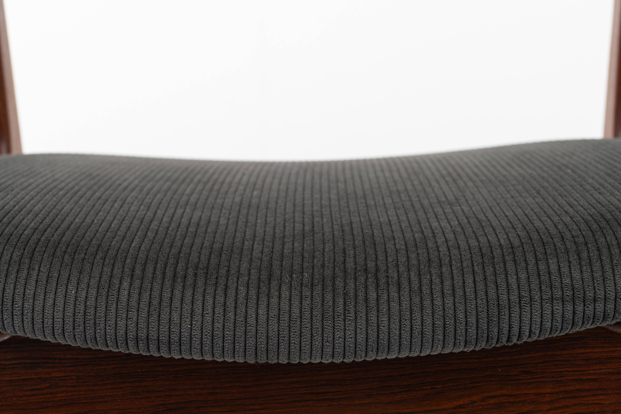 Set of four 'Model 49' dining chairs designed by Erik Buch for O.D. Møbler, Denmark 1960s. The chairs have a rosewood frame and are reupholstered with dark grey corduroy fabric.