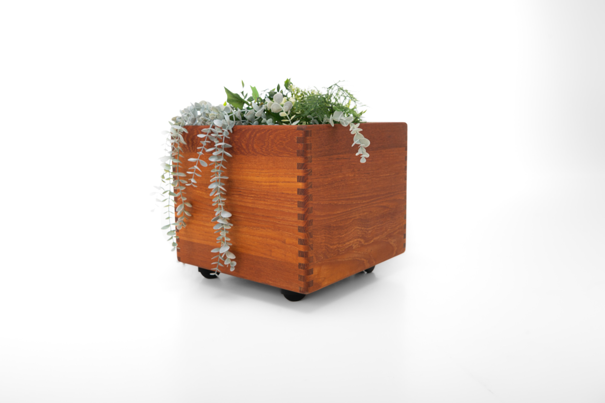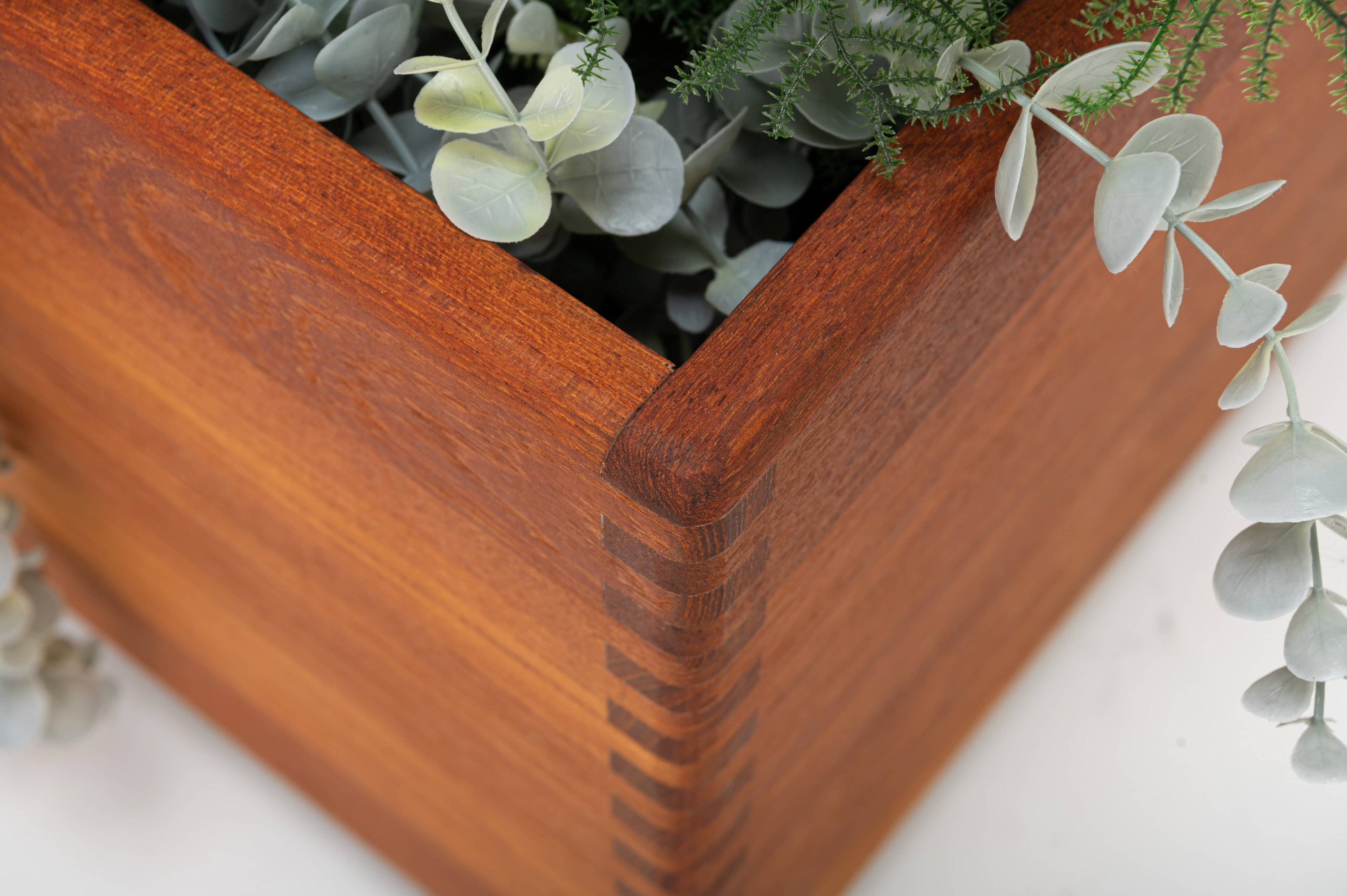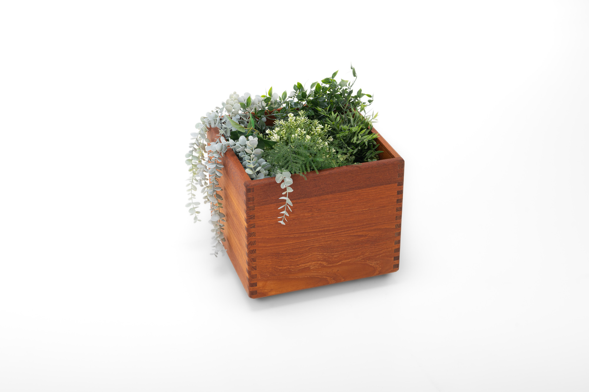 Danish vintage planter in teak. The planter is movable on wheels and is in very good condition. Two pieces available, price per piece.