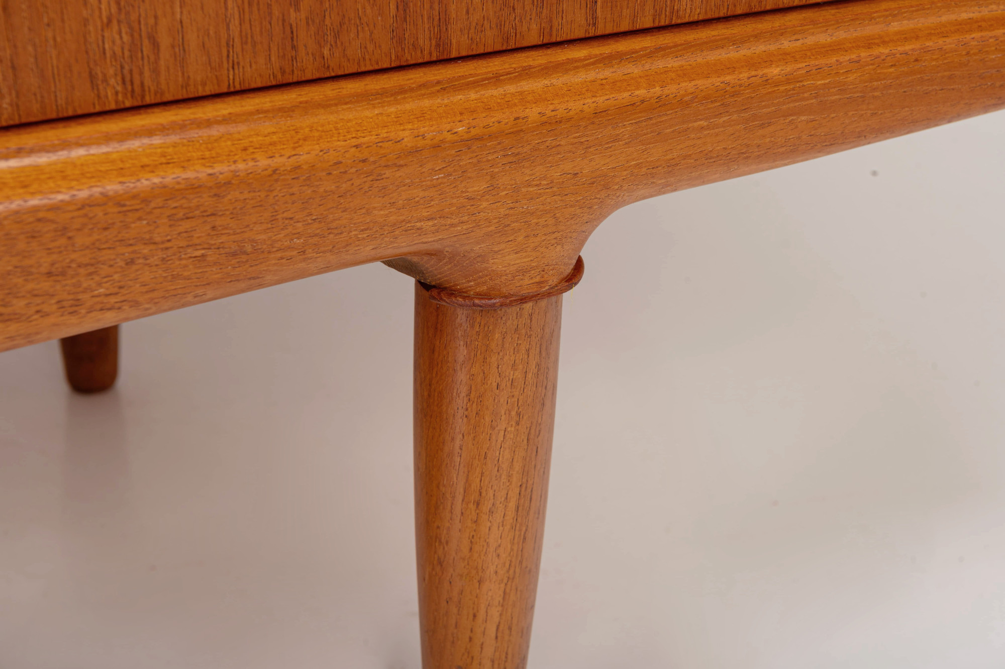Designed in the 1960s and produced by Axel Christensen Odder (ACO Møbler), this beautifully crafted sideboard features elegant handles, four drawers, and a lot of storage space with adjustable shelves.